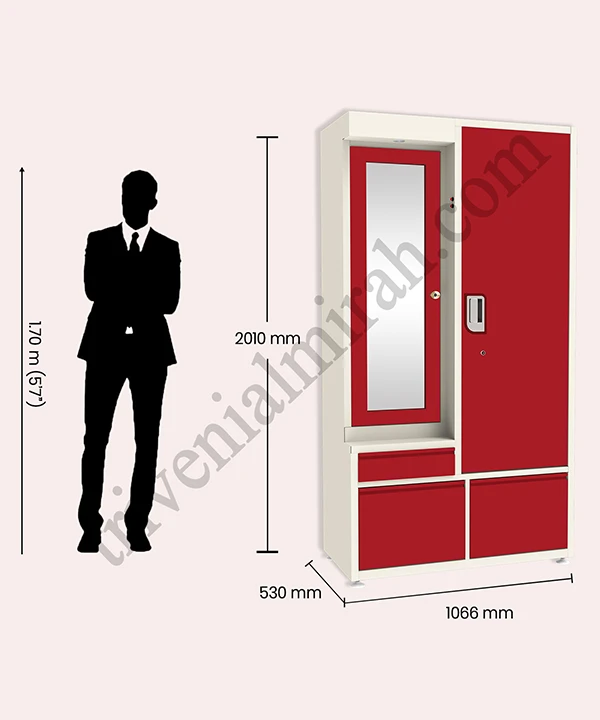 Step into a world where style meets structure. This vibrant maroon and white wardrobe is designed for those who value both aesthetics and functionality. With a secure built-in safe, spacious drawers, and a playful mix of colorful hangers, it’s more than just storage—it’s a statement.
