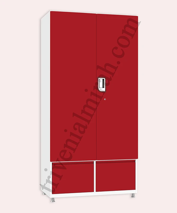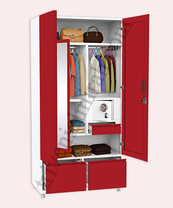 Step into a world where style meets structure. This vibrant red and white wardrobe is designed for those who value both aesthetics and functionality. With a secure built-in safe, spacious drawers, and a playful mix of colorful hangers, it’s more than just storage—it’s a statement.
